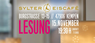 Doch da diese Freude noch ein paar Monate reifen darf, fällt mir für den November dann doch noch etwas Tolles ein. Zwei Dinge eigentlich: Ich werde ein letztes Mal aus „Eisgeleckt“ lesen. Am 22. November im Restaurant Ernst im Modehaus Stackmann. Es gibt leckeres Eis und Buchstaben – holen wir uns für einige Stunden gemeinsam den Sommer zurück! Kommt vorbei – der Vorverkauf läuft noch ein paar Tage.