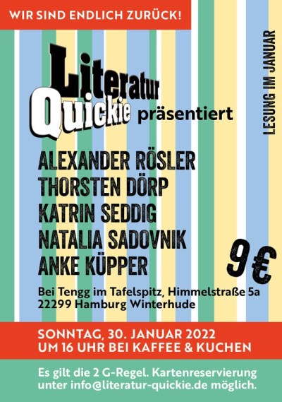 Achja, um zu zeigen, dass ich es ernst meine mit meinem Wunsch "Bunt und Menschen" - die erste Lesung im Januar steht in den Startlöchern. Tolle Menschen lesen, tolle Menschen kommen.